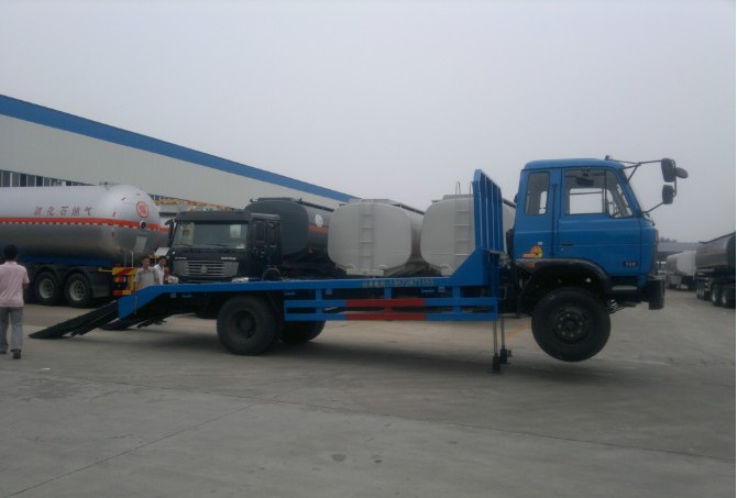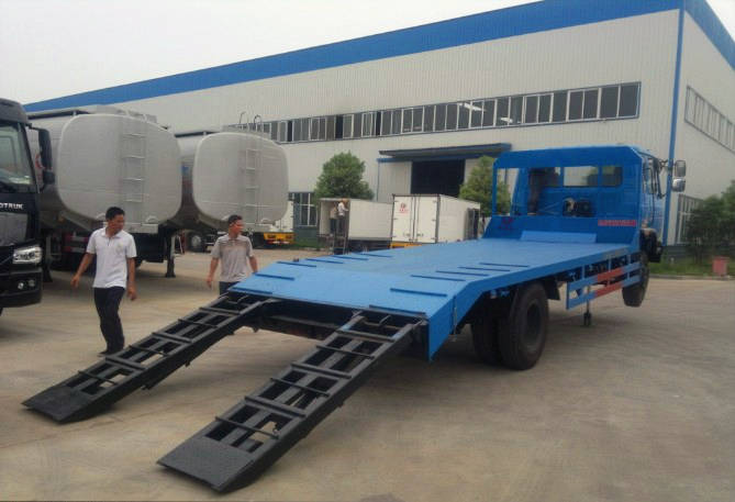 該車是應客戶要求定做的一輛具有前頂裝置的平板運輸車,該車不僅可以運輸普通的挖掘機,和一些大型的不可拆卸物,還因為裝置了前頂,將后爬梯與地面角度變小,可以拖叉車和小轎車。除了可以裝置前頂,我們還可以為客戶裝置絞盤,對 一些無動力的小轎車或者是其它設備進行運輸。如果你對這種類型的車比較感興趣,歡迎來廠來電!咨詢熱線:13277603258 微信同號