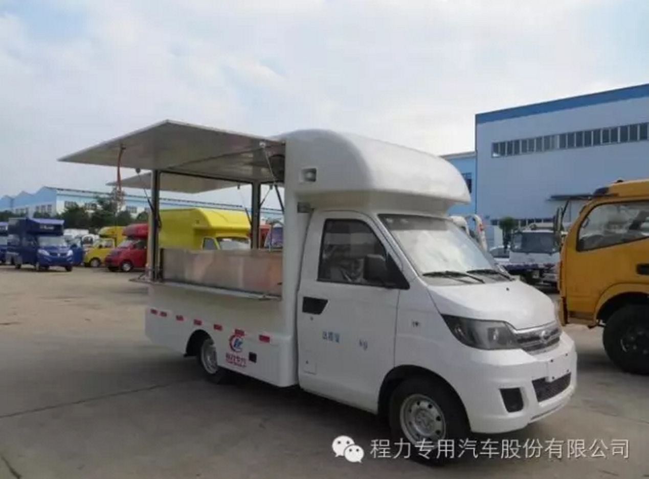 答案就是下圖這種目前很火的車——流動售貨車、流動餐飲車。