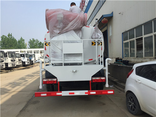 由發(fā)動機(jī)帶動變速箱,變速箱上安裝的取力器帶動灑水泵,灑水泵產(chǎn)生主要動力,將罐體內(nèi)部的液體通過管網(wǎng)噴灑出去。自吸高度:≤7m,灑水寬度:≥20m,最大射程:≥28m;可調(diào)節(jié)成柱狀,射程≥28m;也可調(diào)節(jié)成霧狀,射程≥5m。前噴后灑,前裝有鴨形噴嘴或圓頭沖嘴,后面裝有圓柱開灑水噴嘴或蓮蓬頭噴嘴,后部有一工作平臺,裝配有高壓水炮。后部還可裝8個噴嘴(選裝)噴水器一般用于沖洗街道。