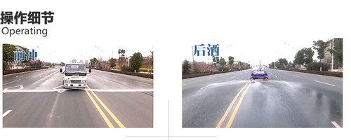 灑水車前裝有鴨形噴嘴或圓頭沖嘴,后面裝有圓柱開灑水噴嘴或蓮蓬頭噴嘴,后部有一工作平臺,裝配有水炮。后部還可裝8個噴嘴(選裝)噴水器一般用于沖洗街道,起除塵和降溫作用,其噴水器可以用調節噴嘴螺紋的方法改變噴水器的噴灑方向和角度,高射水炮可以用于城鄉園林綠化及應急消防。蓮蓬嘴可以澆落路中間噴水器沖起的灰塵,起到清潔空氣的作用。