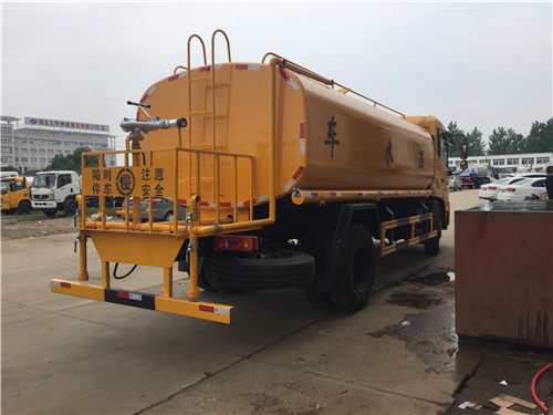 罐體采用4毫米厚武鋼產(chǎn)容積板焊接而成,內(nèi)設(shè)防浪板,程力大功率灑水泵,可自吸水,加壓排水,前沖15米寬,后灑壓塵,側(cè)噴花灑噴頭,尾高綠化高位水炮,射程28米,可調(diào)節(jié)水柱、大中雨、毛毛雨等,可做臨時(shí)消防滅火用。