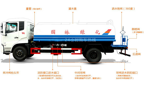 C:灑水車在噴灑或用高炮時,務必將前沖或后灑任意一個球閥打開一個,否則將管道,泵,密封墊因壓力過大沖壞。