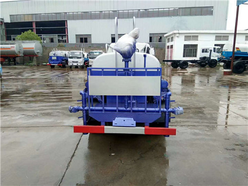 福田灑水車前裝有鴨嘴形噴嘴或圓頭沖嘴,后面裝有圓柱形灑水噴嘴或蓮蓬頭噴嘴,后部有一工作平臺,裝配有水炮。后部還可裝8個噴嘴。