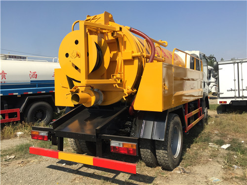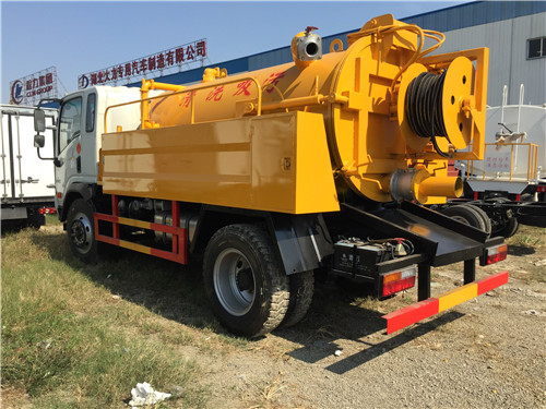 上裝配置:罐體采用優質Q235武鋼5mm碳鋼制作,罐體采用一次壓鑄成型,封頭6mm,吸污罐體容積4方,水罐2方,帶視污窗,安裝有防溢閥,億豐真空泵或SK-6水環式真空泵,帶6米內鋼絲防變形吸污管,配100mm排污球閥,罐體帶液壓舉升系統,后蓋液壓打開、關閉。罐體內有隔襯板,防止吸污罐變形。