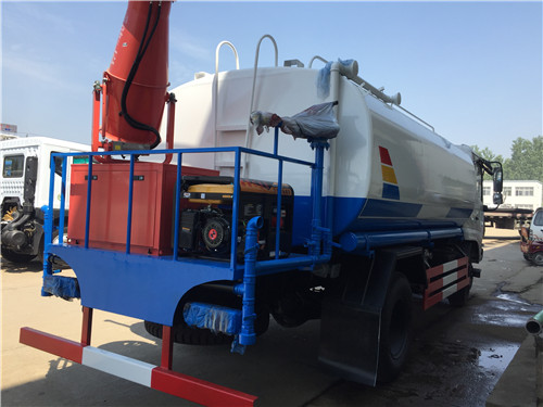 灑水車上裝配置:罐體有效容積12立方,采用5毫米厚武鋼碳板板自動焊接制作,配品牌大功率灑水泵,帶前噴后灑側噴,尾部平臺帶高位水炮,可自吸自排。前沖14米寬,水炮射程28米,自吸深度7米。