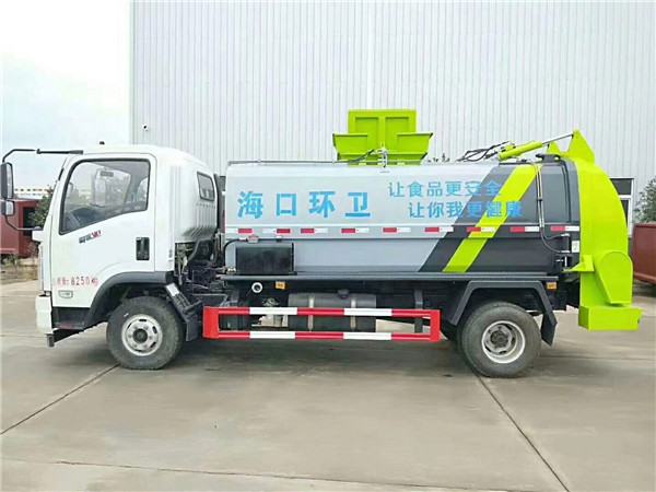 掛桶式后裝餐廚垃圾車是在后裝壓縮式垃圾車尾部填料口處加裝的一種主動提升和傾翻標準垃圾筒的機構,為司機獨自完成垃圾的收運工作供給了便利。