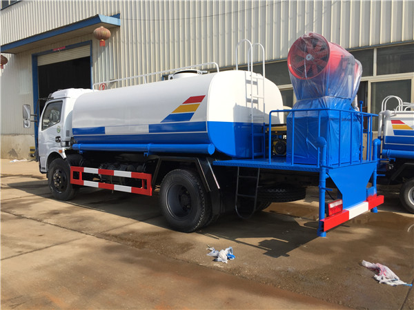 東風(fēng)福瑞卡灑水車前裝有鴨形噴嘴或圓頭沖嘴,灑水車后面裝有圓柱開灑水噴嘴或蓮蓬頭噴嘴,后部有一工作平臺(tái),裝配有水炮。后部還可裝8個(gè)噴嘴(選裝)噴水器一般用于沖洗街道,起除塵和降溫作用,其噴水器可以用調(diào)節(jié)噴嘴螺紋的方法改變噴水器的噴灑方向和角度,高射水炮可以用于城鄉(xiāng)園林綠化及應(yīng)急消防。蓮蓬嘴可以澆落路中間噴水器沖起的灰塵,起到清潔空氣的作用。