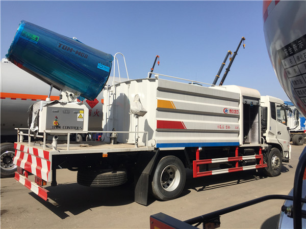 一臺“霧炮”灑水車可噴灑100多米。“霧炮”又叫環保除塵風送式噴霧機,安裝在車的后半部分。“霧炮”的原理是在液泵噴水后,利用風機將水噴灑出去,能噴灑120米遠、90米高。向天空噴灑水霧,達到抑制揚塵、綠化除塵等效果。