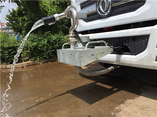 灑水車的工作平臺主要采用花紋防滑板制作而成,防滑板的厚度5毫米,平臺是寬度50-70公分,高度60-80公分,主要是便于工作人員安全操作而設計的尺寸,另外工作平臺上還設計的有腳踏板,便于工作人員上下,平臺上面安裝的綠化灑水炮,主要用于路面沖洗,園林綠化,以及應急消防。綠化灑水炮的工作狀態,可以360度旋轉,射程30米左右,可以調節成大雨、小雨、毛毛雨和柱狀。后灑裝置主要用于路面養護,噴灑寬度15米左右。側噴主要用于公路綠化帶噴灑綠化。