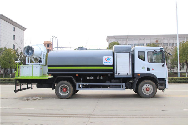 一種就是城市里面使用的抑塵車,抑塵車又稱為:霧炮車、噴藥車。霧炮車噴射的水霧顆粒達到微米級,能有效分解空氣中的污染顆粒物、塵埃等,在霧霾天氣下用于降塵除霧,可以有效的緩解霧霾,其節水的特性同樣也可以用作灑水車使用。霧炮車還可以降塵、灑水,把樹上的灰塵洗掉。霧炮車噴灑出的水霧與懸浮在空氣中的PM2.5和PM10粉塵顆粒吸附、聚合、沉降,達到消除污染物和減霾的目的。盡管霧炮口徑巨大,但其噴灑耗水量僅為傳統灑水車的兩到三成,覆蓋面積和除塵效率卻高出20倍。既提高效率,也避免路面積水影響交通。