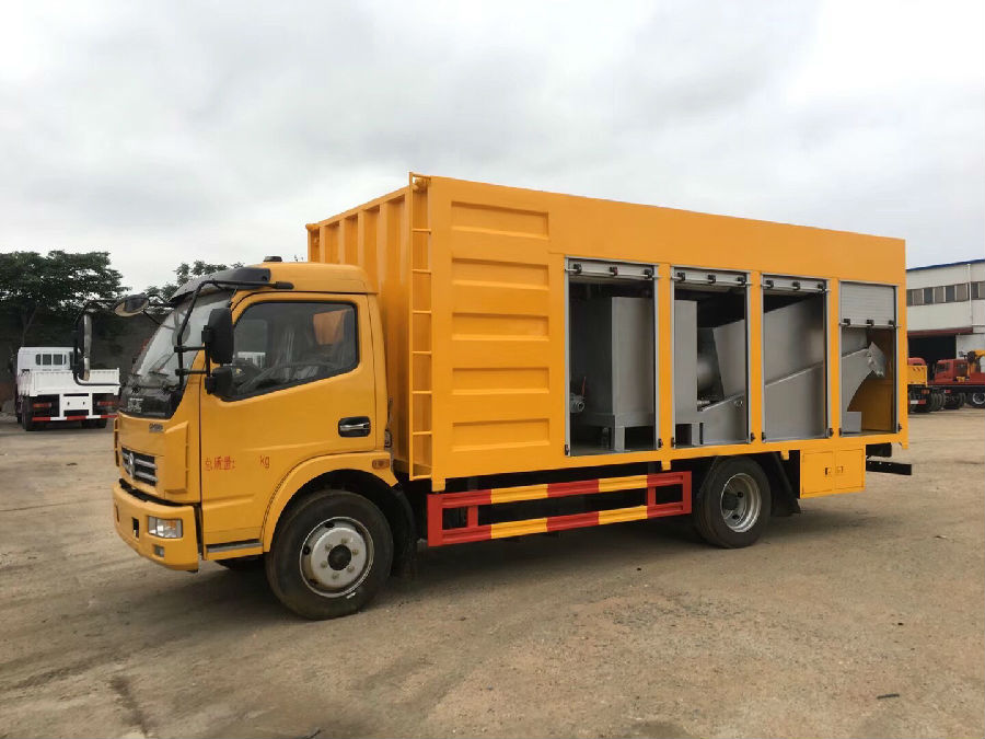 污水處凈化是在二類載貨汽車地盤的基礎(chǔ)上加裝貨箱、分離箱、藥箱、取力器、真空泵、排污泵、凸輪轉(zhuǎn)子泵、疊螺機(jī)、LED廣告宣傳屏等專用裝置改裝而成。該車結(jié)構(gòu)簡(jiǎn)單、性能可靠、操控方便,可對(duì)化糞池快速處理。