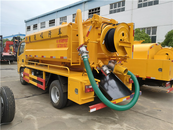 聯(lián)合疏通高壓清洗吸污車專用部分由取力器、傳動(dòng)軸、真空吸污泵、壓力罐體、液壓部分,管網(wǎng)系統(tǒng)、真空壓力表、視糞窗、洗手裝置等組成,隨車配置大功率真空吸污泵和優(yōu)質(zhì)液壓系統(tǒng),罐體封頭一次壓鑄成型、罐體可后開、雙頂自卸。罐內(nèi)污物可通過后蓋直接傾倒,具有真空度高(比吸糞車的吸力更大)、噸位大、效率高、用途更廣泛的特點(diǎn)。