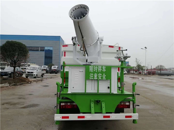 霧炮車前噴頭位置較低,靠近地面,噴灑壓力較大,可用于沖洗路面;后噴頭位置較高(灑水車后噴頭一般左右各安裝一個),霧炮面較寬,可用于公路施工霧炮,使用后噴頭時,應將前噴管關閉;使用可調噴頭霧炮時,霧炮寬度可根據需要調整。霧炮寬度越寬,中間重疊量越少,霧炮密度越均勻。