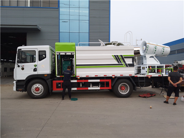 我廠生產(chǎn)的環(huán)衛(wèi)抑塵車根據(jù)罐體容積不同,采用4-6mm厚武鋼Q235碳鋼板制作,罐體內置防浪板,避免車輛急剎時液體前涌造成的安全隱患,罐體頂部開有人孔。人孔既可以作為工作人員進行罐內檢修的進出口,也可以作為加水孔用于向罐內加注水;隨車配備大功率專用灑水泵(標配隨州億豐灑水泵,選配杭州威龍灑水泵),比同類灑水泵壓力大、吸程遠、使用壽命長,克服其他灑水泵易被雜物纏住、壓力小、吸水慢的缺點。整車帶前沖(噴)、后灑、側噴、罐體后部帶工作臺,平臺上安裝綠化高壓灑水炮。灑水炮可全方位旋轉,可連續(xù)調成直沖狀、開花狀、大雨、小雨、毛毛雨、半霧狀水流,以適合不同狀況下的需求。