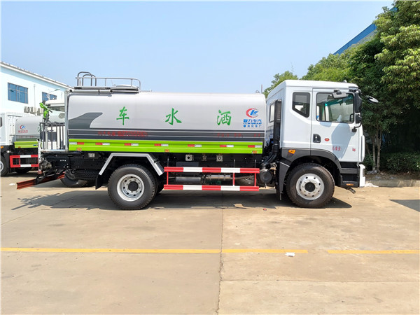 2、湖北程力多功能灑水車前噴頭位置較低,靠近地面,噴灑壓力較大,可用于沖洗路面;后噴頭位置較高(多功能灑水車后噴頭一般左右各安裝一個),灑水面較寬,可用于公路施工灑水,使用后噴頭時,應將前噴管關閉;使用可調噴頭灑水時,灑水寬度可根據需要調整。灑水寬度越寬,中間重疊量越少,灑水密度越均勻。