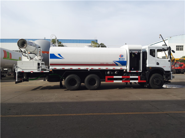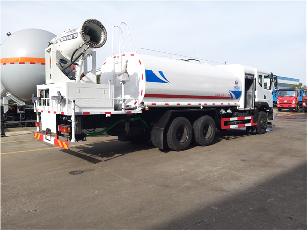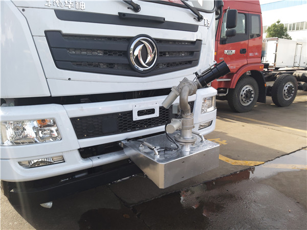 6、東風灑水車采用氣動裝置,可在駕駛室內(nèi)控制出水。具有前沖、后灑、側(cè)噴、后工作平臺,高壓綠化水炮。