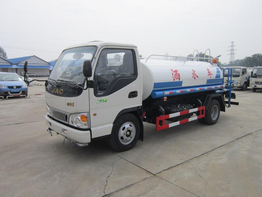 3、江淮灑水車(5噸)采用江淮康玲底盤,白色可前翻駕駛室,江淮朝柴116馬力國五發動機,5擋變速箱,軸距3360mm,3.5噸后橋,7.00-16原廠尼龍胎,原廠abs,帶方向助力,離合助力器,氣剎制動。