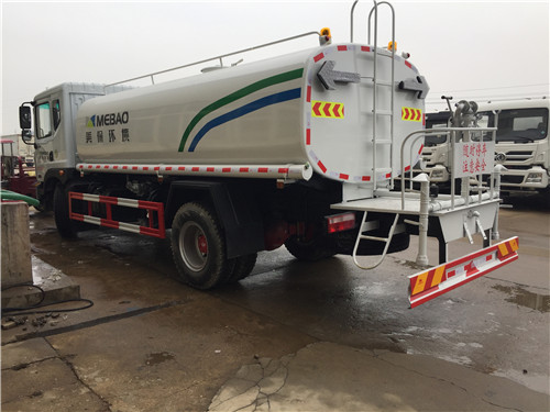 改裝配置:罐體用4MM碳鋼板制作,罐內(nèi)隔板具有防波作用,以減低汽車行駛時(shí)罐體液體的沖擊。整車帶一個(gè)專用灑水泵(垂直最大吸程6米),灑水寬度14米,射程28米。多功能灑水車配備2個(gè)前沖(噴)(能將路面泥巴、塵土、垃圾沖干凈);2個(gè)后灑(能均勻地將水灑在路面,一次灑水寬度14米)、2個(gè)側(cè)噴(花灑)(能均勻地將路旁綠化帶澆灌)、帶1個(gè)后工作平臺(tái),平臺(tái)上安裝1個(gè)綠化灑水高炮(灑水炮可全方位旋轉(zhuǎn),可連續(xù)調(diào)成直沖狀、大雨、小雨、毛毛雨,霧狀可調(diào)節(jié)沖洗高大樹(shù)木),引水時(shí)間<5min,流量90m3/h。帶1個(gè)消防接頭,帶1個(gè)自流閥,1個(gè)過(guò)濾裝置、人性化爬梯及側(cè)防護(hù)欄,安裝灑水音樂(lè)喇叭。