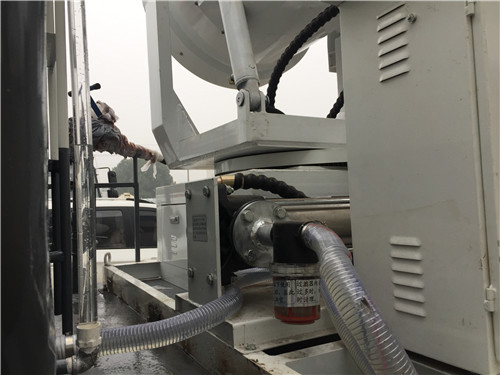 10、重汽100米多功能抑塵車后部加裝操作平臺,平臺上安裝高壓水炮,高壓炮豎管采用U型螺栓固定,防止噴水時產(chǎn)生沖力,罐體后部加裝上下扶梯,罐體頂部圍板形式。保證人員在罐頂作業(yè)時的安全。