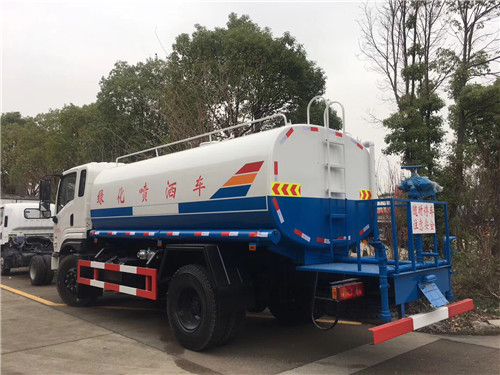 選裝配置:標準配置灑水車(綠化噴灑車、水罐車):前沖后灑、側噴;高位側花灑;后工作平臺,帶綠化灑水高炮,可調節成柱狀,射程≥28m;也可調節成霧狀,射程≥15m。可選配藥盤、打藥機。也可加裝藥盤、藥泵、罐內防腐防銹、多方位進出水接頭、電磁閥、氣動閥等先進設施,以滿足不同用戶需求。