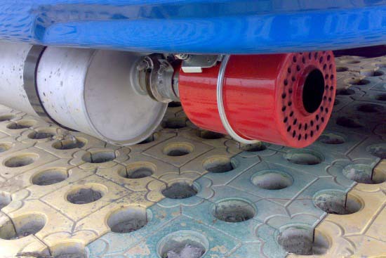 對(duì)于爆破器材運(yùn)輸車來說,要將車輛發(fā)動(dòng)機(jī)排氣管應(yīng)前置,并且應(yīng)該安裝排氣火花熄滅器。安裝在排氣管尾端,對(duì)機(jī)動(dòng)車廢氣進(jìn)行冷卻,從而熄滅廢氣內(nèi)夾帶的火花。