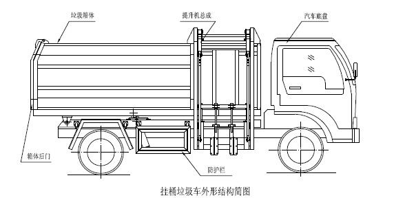 程力專用汽車掛桶式垃圾車(以下簡稱垃圾車)是用于城鎮(zhèn)內(nèi)的垃圾收集、轉(zhuǎn)運(yùn)、卸料作業(yè)的專用車輛。該車是由汽車底盤、自卸油缸、提升機(jī)總成、頂蓋(選裝)、附車架、垃圾箱體等組成。該車操作由液壓控制系統(tǒng)來完成,控制方式可以為手動(dòng)或電氣控。該車主要用于城鎮(zhèn)垃圾的垃圾收集、轉(zhuǎn)運(yùn)和卸料。操作開提升控制閥將垃圾桶隨提升機(jī)向上升起并翻轉(zhuǎn)傾斜,桶內(nèi)垃圾被倒入車廂內(nèi)完成垃圾單次裝載,反向操作提升控制閥,垃圾桶隨提升機(jī)而放下;完成垃圾裝載后再進(jìn)行傾卸時(shí),操作自卸控制閥,垃圾箱繞后翻轉(zhuǎn)軸傾斜體舉,箱體后門打開,垃圾傾卸出箱體;起該車由液壓控制系統(tǒng)來完成該車的提升機(jī)的上升和下降及垃圾的自卸功能,降低了工人的勞動(dòng)強(qiáng)度和改善了工作環(huán)境。該垃圾車的收運(yùn)方式是目前國內(nèi)泛采用的垃圾收集轉(zhuǎn)運(yùn)方式,其專用裝置的功能均以汽車發(fā)動(dòng)機(jī)為動(dòng)力,通過液壓機(jī)構(gòu)手動(dòng)或電控、氣控來實(shí)現(xiàn)。車輛的箱體采用優(yōu)質(zhì)炭鋼板全密封焊接結(jié)構(gòu),具有強(qiáng)度高、重量輕,防塵、防溢不產(chǎn)生二次污染等優(yōu)點(diǎn)。垃圾車整車基本性能與原底盤車相同,用戶請參閱原底盤車使用手冊。本用說明書僅介紹專用改裝部分的有關(guān)操作、檢查和維修保養(yǎng)。在使用車輛前,我們強(qiáng)烈要求您能夠通讀本說明書,并對其中的操作程序做到得心應(yīng)手。我廠對產(chǎn)品將會(huì)進(jìn)一步改進(jìn)。產(chǎn)品的改進(jìn)、性能的提高、結(jié)構(gòu)的不斷完善恕不另行通知,從而有某些說明不適用于您的特定車輛,敬請諒解。